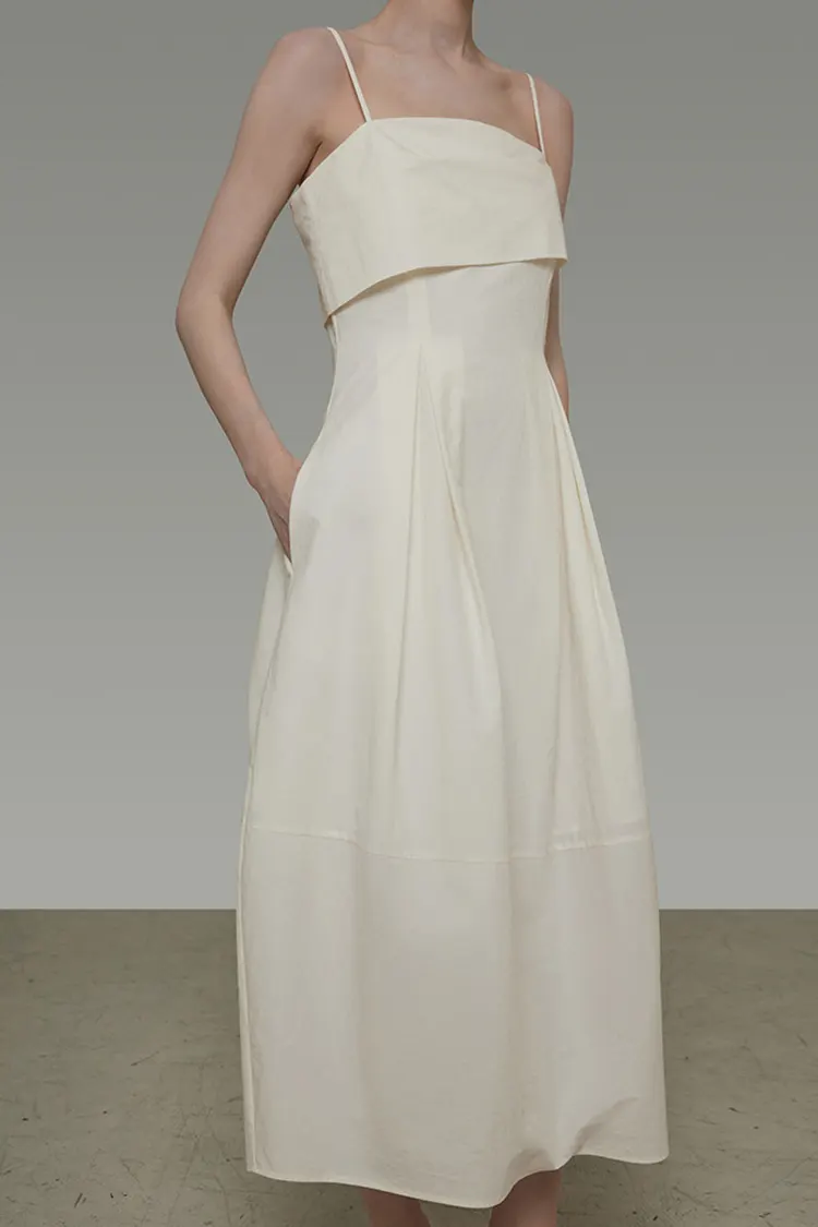 Pakaian Slip Leher Lipat Asimetri Gaya Perancis, Pakaian Panjang Tanpa Lengan Rekaan Unik Musim Panas