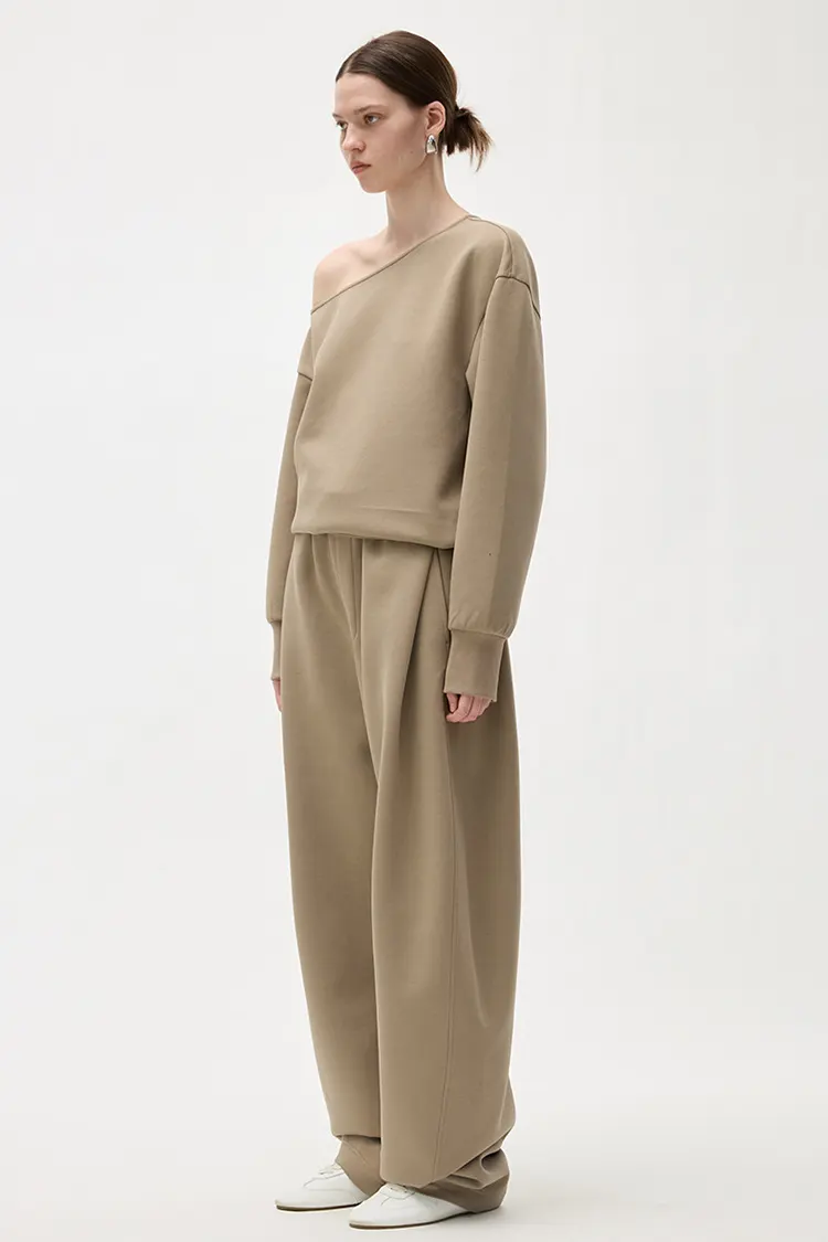 Seluruh pinggang seluar direka dengan teknologi pleating. Muatannya longgar dan selesa, dengan gaya yang elegan. Ia boleh membentuk pelbagai bentuk kaki dengan cantik dan mempunyai tahap fleksibiliti yang tinggi untuk garis kaki. Potongan kaki lebar yang longgar tidak terhad oleh bentuk badan, secara visual menjadikan kaki kelihatan lebih langsing dan lurus. Apabila berjalan, draping adalah semula jadi. Ia mengekalkan sifat kasual dan berjiwa bebas bagi seluar kasual di samping mempunyai ciri-ciri kemas dan elegan seluar berkaki lebar. Berbeza daripada seluar peluh biasa, ia mempunyai rasa fesyen dan kecanggihan yang lebih kuat. Khalayak sasaran adalah luas dan penukaran jualan adalah stabil.